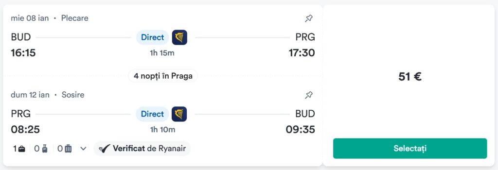 - dum 19-mie 22/01 Cluj-Praga-Cluj 120 Euro (Ryanair cu escală în Charleroi și Milano Bergamo)